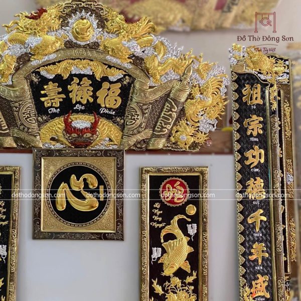 – Họa tiết tinh tế: Cuốn Thư Câu Đối bằng đồng được trang trí nhiều họa tiết hoa văn mang ý nghĩa tốt lành như rồng, phượng hoàng, hoa sen, hoa mai, dơi. Một số Cuốn Thư Câu Đối cao cấp còn được mạ vàng, khảm tam khí ngũ sắc để tăng sự sang trọng, quý phái nơi thờ tự.