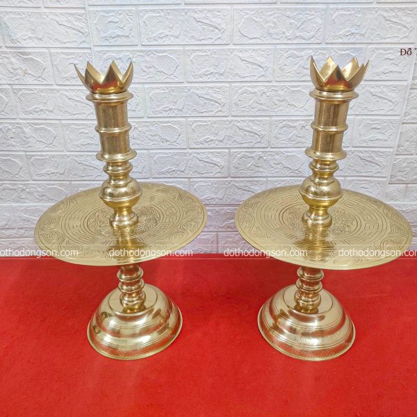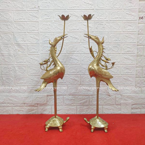 | Kích thước cụ thể | Đỉnh đồng: 65cm – Hạc: 68cm – Nến hoa văn: 50cm |