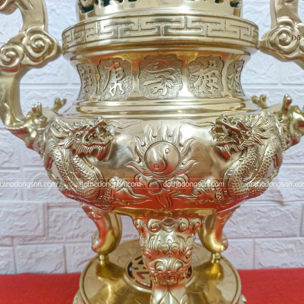 – Họa tiết tinh tế: Bộ Đồ Thờ bằng đồng được trang trí nhiều họa tiết hoa văn mang ý nghĩa tốt lành như chim hạc, rồng, sen, phượng hoàng. Một số Bộ Đồ Thờ cao cấp còn được dát vàng, khảm tam khí, ngũ sắc càng làm tăng thêm sự sang trọng, quý giá nơi thờ tự.
