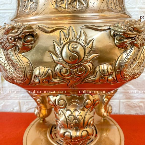 – Họa tiết tinh tế: Bộ Đồ Thờ bằng đồng được trang trí nhiều họa tiết hoa văn mang ý nghĩa tốt lành như chim hạc, rồng, sen, phượng hoàng. Một số Bộ Đồ Thờ cao cấp còn được dát vàng, khảm tam khí, ngũ sắc càng làm tăng thêm sự sang trọng, quý giá nơi thờ tự.