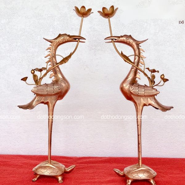 | Kích thước cụ thể | Đỉnh đồng: 60cm – Hạc: 62cm – Nến hoa văn: 45cm |