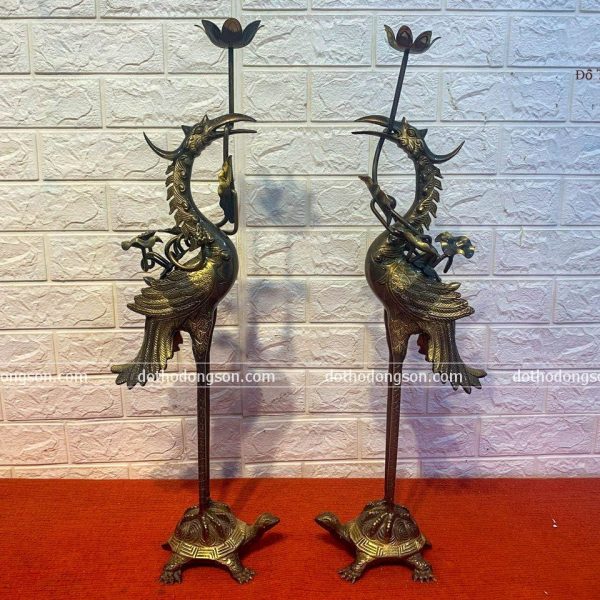 | Kích thước cụ thể | Đỉnh đồng: 60cm – Hạc: 62cm – Nến hoa văn: 45cm |