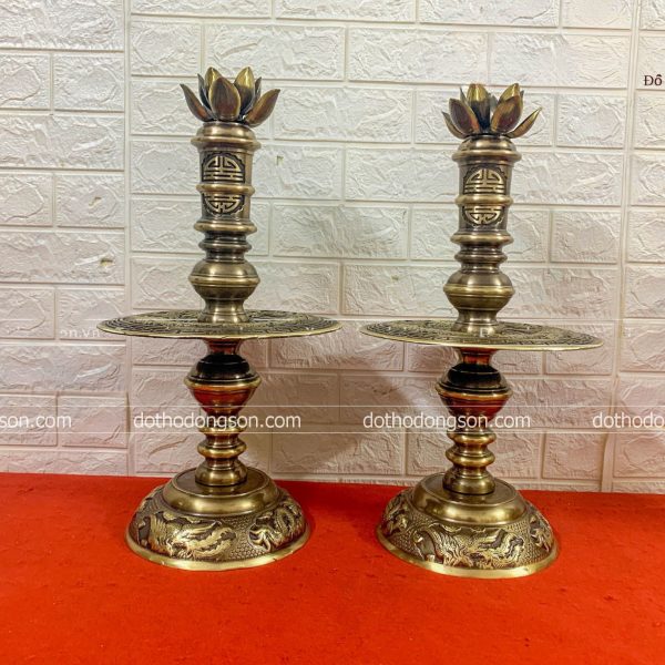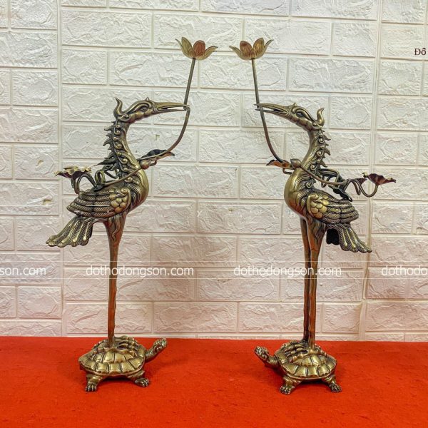 | Kích thước cụ thể | Đỉnh đồng: 62cm – Hạc: 68cm – Nến hoa văn: 45cm |