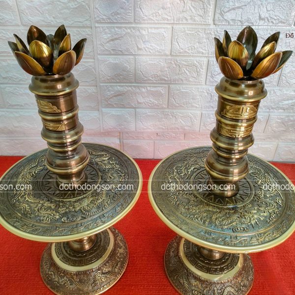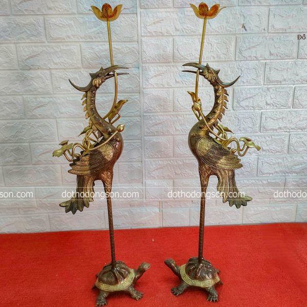 | Kích thước cụ thể | Đỉnh đồng: 65cm – Hạc: 68cm – Nến hoa văn: 45cm |