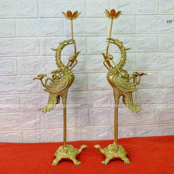 | Kích thước cụ thể | Đỉnh đồng: 40cm – Hạc: 42cm – Nến hoa văn: 35cm |