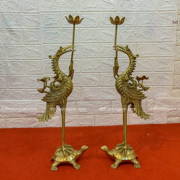| Kích thước cụ thể | Đỉnh đồng: 50cm – Hạc: 52cm – Nến hoa văn: 40cm |