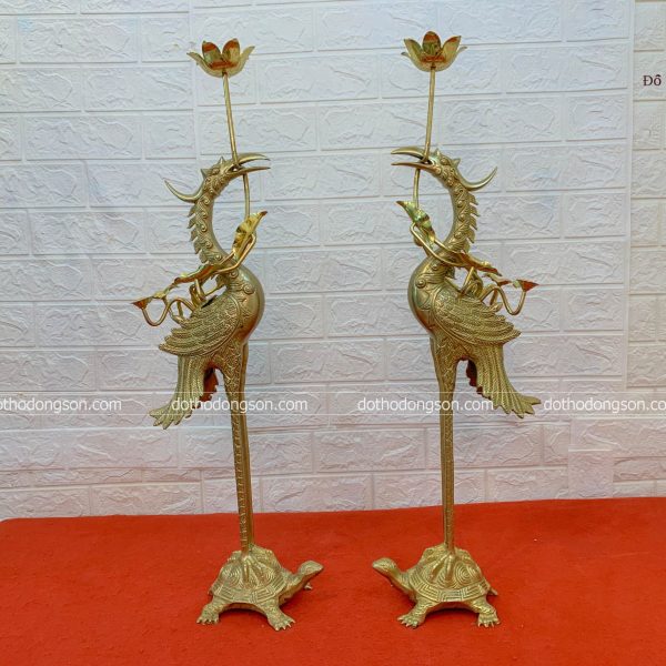 | Kích thước cụ thể | Đỉnh đồng: 65cm – Hạc: 68cm – Nến hoa văn: 45cm |