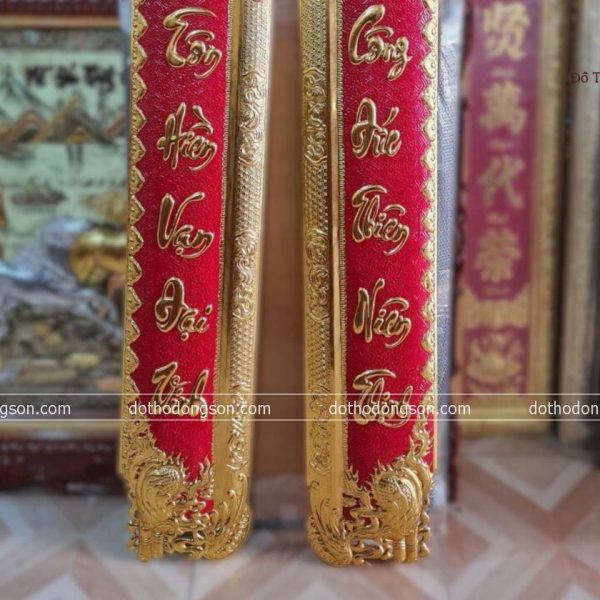 – Họa tiết tinh tế: Cuốn Thư Câu Đối bằng đồng được trang trí nhiều họa tiết hoa văn mang ý nghĩa tốt lành như rồng, phượng hoàng, hoa sen, hoa mai, dơi. Một số Cuốn Thư Câu Đối cao cấp còn được mạ vàng, khảm tam khí ngũ sắc để tăng sự sang trọng, quý phái nơi thờ tự.