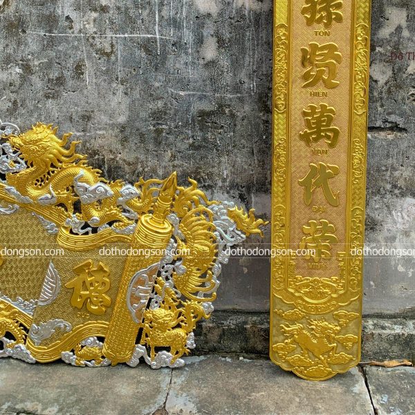 – Họa tiết tinh tế: Cuốn Thư Câu Đối bằng đồng được trang trí nhiều họa tiết hoa văn mang ý nghĩa tốt lành như rồng, phượng hoàng, hoa sen, hoa mai, dơi. Một số Cuốn Thư Câu Đối cao cấp còn được mạ vàng, khảm tam khí ngũ sắc để tăng sự sang trọng, quý phái nơi thờ tự.