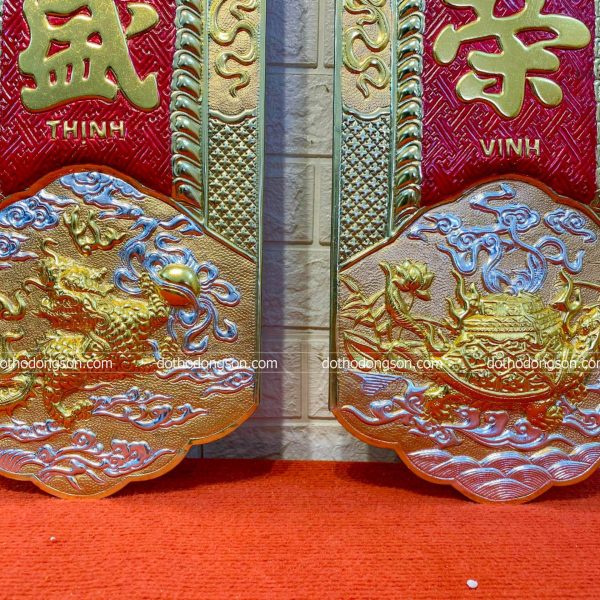 – Họa tiết tinh tế: Cuốn Thư Câu Đối bằng đồng được trang trí nhiều họa tiết hoa văn mang ý nghĩa tốt lành như rồng, phượng hoàng, hoa sen, hoa mai, dơi. Một số Cuốn Thư Câu Đối cao cấp còn được mạ vàng, khảm tam khí ngũ sắc để tăng sự sang trọng, quý phái nơi thờ tự.