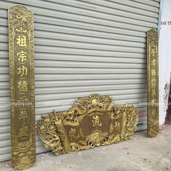 | Kích thước cụ thể | Cuốn thư: Dài 155cm – Cao 78cm Câu đối: Cao 155cm – Rộng 25cm |