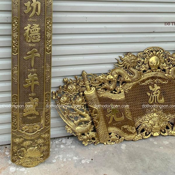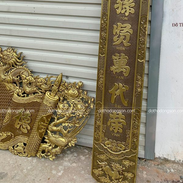 – Họa tiết tinh tế: Cuốn Thư Câu Đối bằng đồng được trang trí nhiều họa tiết hoa văn mang ý nghĩa tốt lành như rồng, phượng hoàng, hoa sen, hoa mai, dơi. Một số Cuốn Thư Câu Đối cao cấp còn được mạ vàng, khảm tam khí ngũ sắc để tăng sự sang trọng, quý phái nơi thờ tự.