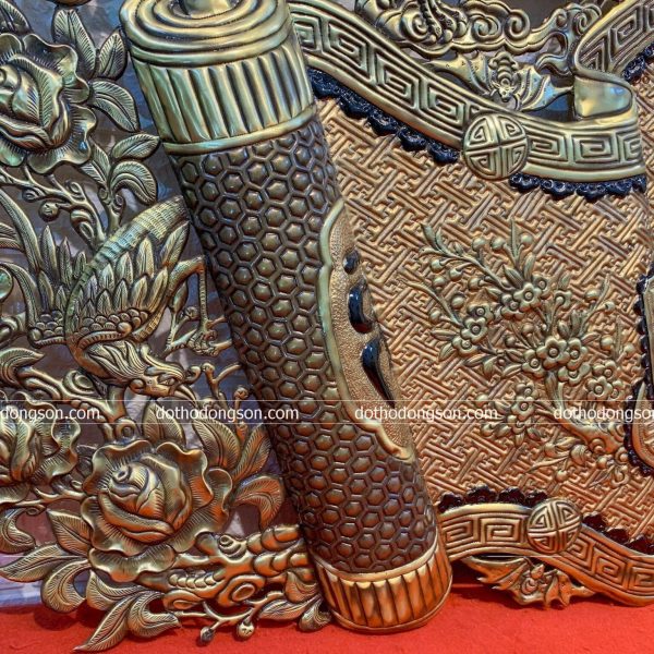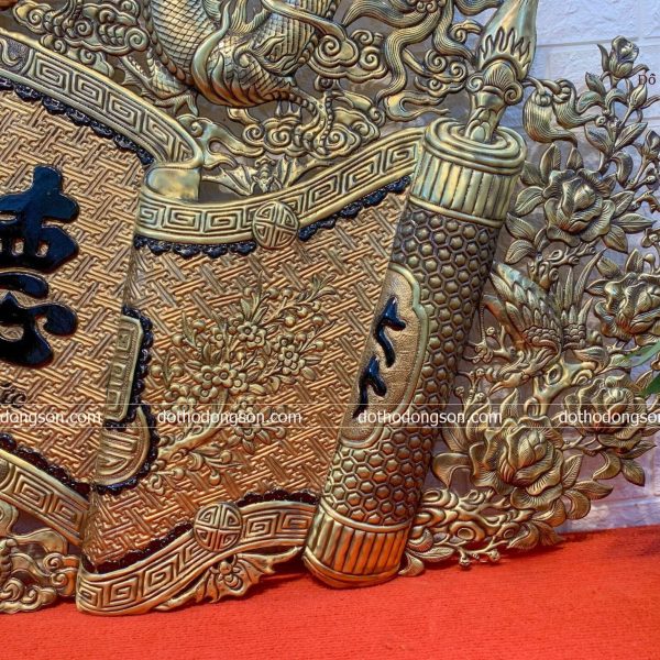 – Họa tiết tinh tế: Cuốn Thư Câu Đối bằng đồng được trang trí nhiều họa tiết hoa văn mang ý nghĩa tốt lành như rồng, phượng hoàng, hoa sen, hoa mai, dơi. Một số Cuốn Thư Câu Đối cao cấp còn được mạ vàng, khảm tam khí ngũ sắc để tăng sự sang trọng, quý phái nơi thờ tự.
