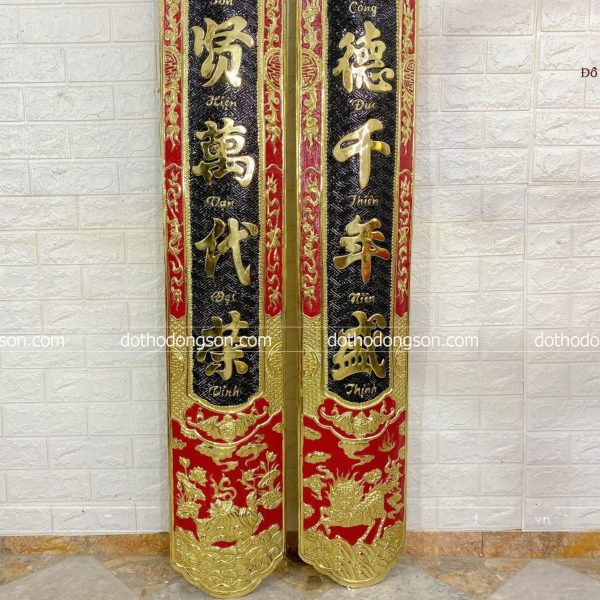 | Kích thước cụ thể | Cuốn thư: Dài 197cm – Cao 90cm Câu đối: Cao 197cm – Rộng 27cm |