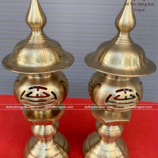 – Họa tiết tinh tế: Đèn Thờ bằng đồng được trang trí nhiều họa tiết hoa văn mang ý nghĩa tốt lành như chim hạc, rồng, sen, phượng hoàng. Một số Đèn Thờ bằng đồng cao cấp còn được mạ vàng, khảm tam khí ngũ sắc để tăng sự sang trọng, quý phái nơi thờ tự.