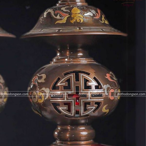 – Họa tiết tinh tế: Đèn Thờ bằng đồng được trang trí nhiều họa tiết hoa văn mang ý nghĩa tốt lành như chim hạc, rồng, sen, phượng hoàng. Một số Đèn Thờ bằng đồng cao cấp còn được mạ vàng, khảm tam khí ngũ sắc để tăng sự sang trọng, quý phái nơi thờ tự.