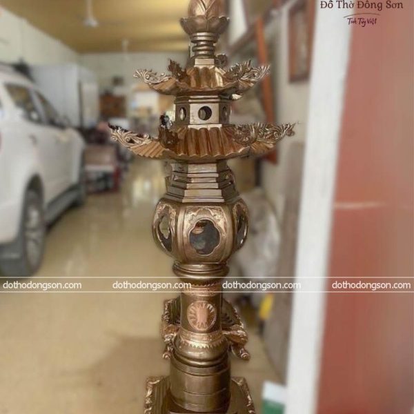 – Họa tiết tinh tế: Đèn Thờ bằng đồng được trang trí nhiều họa tiết hoa văn mang ý nghĩa tốt lành như chim hạc, rồng, sen, phượng hoàng. Một số Đèn Thờ bằng đồng cao cấp còn được mạ vàng, khảm tam khí ngũ sắc để tăng sự sang trọng, quý phái nơi thờ tự.
