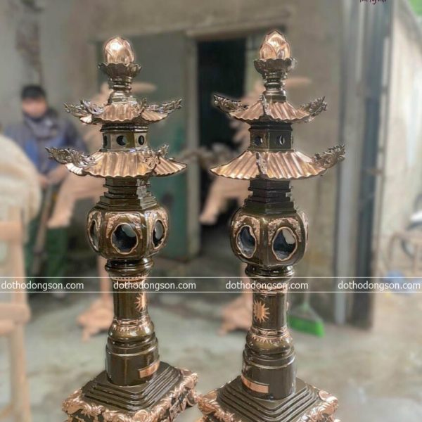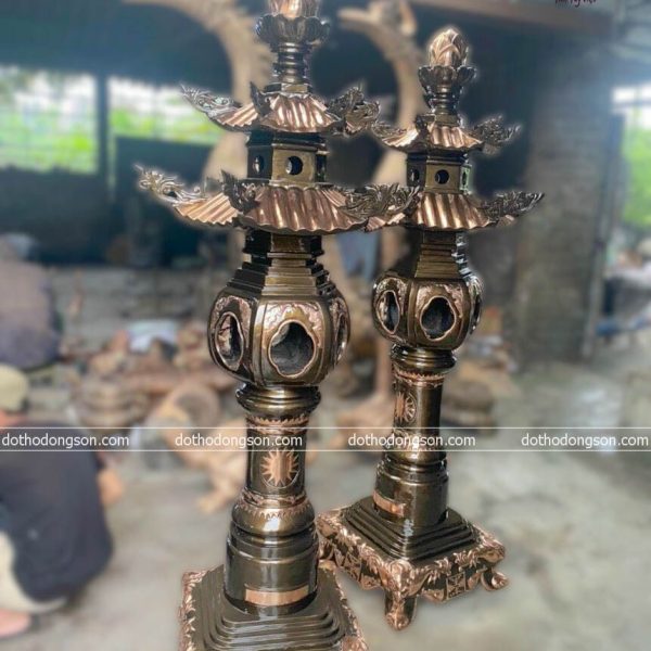 – Họa tiết tinh tế: Đèn Thờ bằng đồng được trang trí nhiều họa tiết hoa văn mang ý nghĩa tốt lành như chim hạc, rồng, sen, phượng hoàng. Một số Đèn Thờ bằng đồng cao cấp còn được mạ vàng, khảm tam khí ngũ sắc để tăng sự sang trọng, quý phái nơi thờ tự.