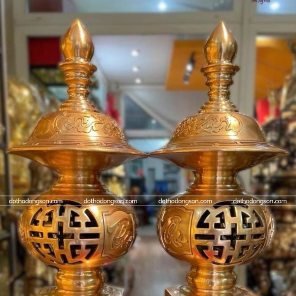 – Họa tiết tinh tế: Đèn Thờ bằng đồng được trang trí nhiều họa tiết hoa văn mang ý nghĩa tốt lành như chim hạc, rồng, sen, phượng hoàng. Một số Đèn Thờ bằng đồng cao cấp còn được mạ vàng, khảm tam khí ngũ sắc để tăng sự sang trọng, quý phái nơi thờ tự.
