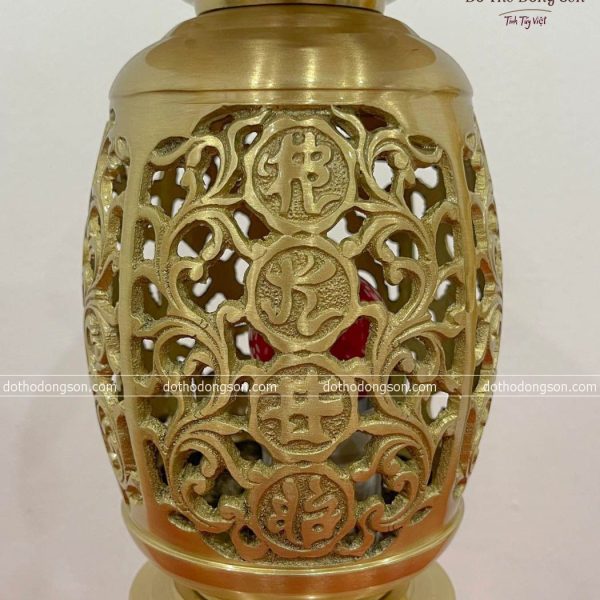 – Họa tiết tinh tế: Đèn Thờ bằng đồng được trang trí nhiều họa tiết hoa văn mang ý nghĩa tốt lành như chim hạc, rồng, sen, phượng hoàng. Một số Đèn Thờ bằng đồng cao cấp còn được mạ vàng, khảm tam khí ngũ sắc để tăng sự sang trọng, quý phái nơi thờ tự.