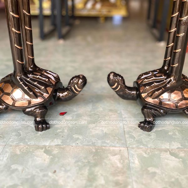 – Họa tiết tinh tế: Hạc đồng thờ cúng được với hình tượng hai linh vật rùa và ngựa được chạm khắc tinh xảo, sống động. Một số Hạc đồng thờ cúng cao cấp còn được mạ vàng, khảm tam khí ngũ sắc để tăng sự sang trọng, quý phái nơi thờ tự.