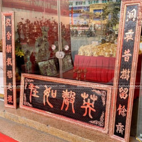 – Họa tiết tinh tế: Hoành Phi Câu Đối bằng đồng được trang trí nhiều họa tiết hoa văn mang ý nghĩa tốt lành như rồng, phượng hoàng, hoa sen, dơi. Một số Hoành Phi Câu Đối cao cấp còn được mạ vàng, khảm tam khí ngũ sắc để tăng sự sang trọng, quý phái nơi thờ tự.
