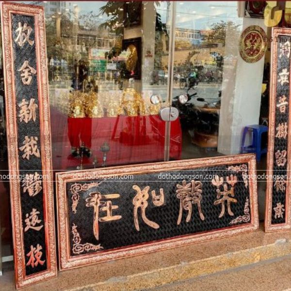 | Kích thước cụ thể | Hoành phi: Dài 197cm – Cao 85cm Câu đối: Cao 197cm – Rộng 25cm |