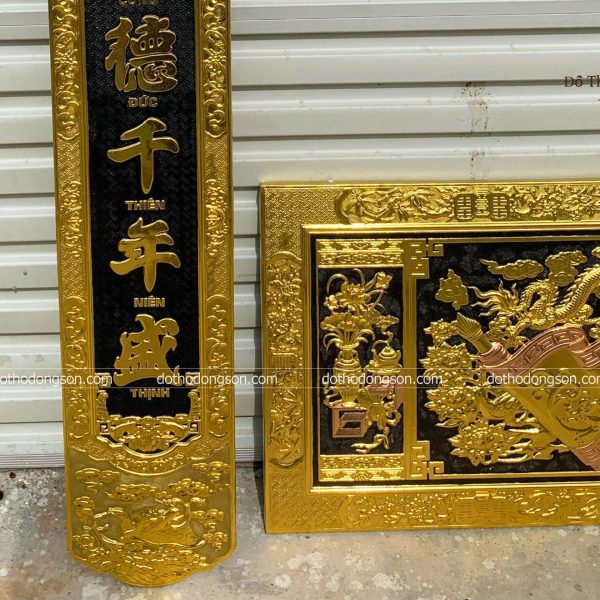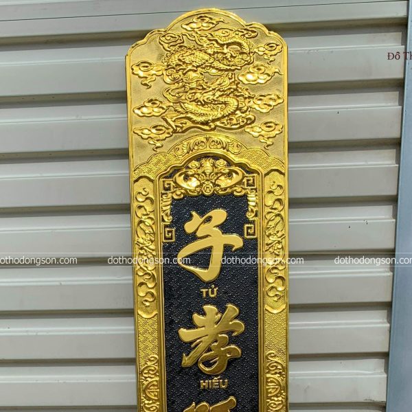 – Họa tiết tinh tế: Hoành Phi Câu Đối bằng đồng được trang trí nhiều họa tiết hoa văn mang ý nghĩa tốt lành như rồng, phượng hoàng, hoa sen, dơi. Một số Hoành Phi Câu Đối cao cấp còn được mạ vàng, khảm tam khí ngũ sắc để tăng sự sang trọng, quý phái nơi thờ tự.