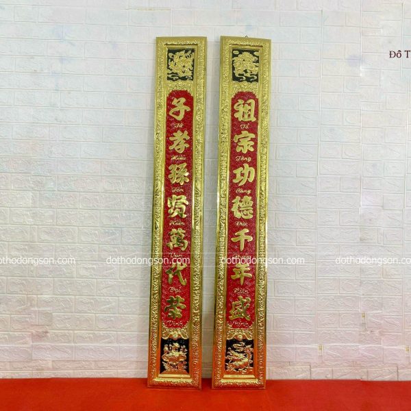 | Kích thước cụ thể | Hoành phi: Dài 176cm – Cao 68cm Câu đối: Cao 176cm – Rộng 25cm |