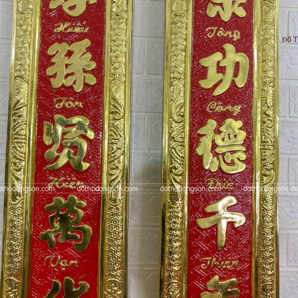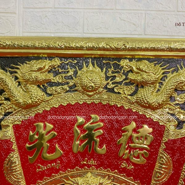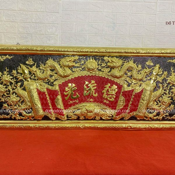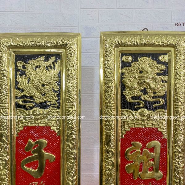 – Họa tiết tinh tế: Hoành Phi Câu Đối bằng đồng được trang trí nhiều họa tiết hoa văn mang ý nghĩa tốt lành như rồng, phượng hoàng, hoa sen, dơi. Một số Hoành Phi Câu Đối cao cấp còn được mạ vàng, khảm tam khí ngũ sắc để tăng sự sang trọng, quý phái nơi thờ tự.