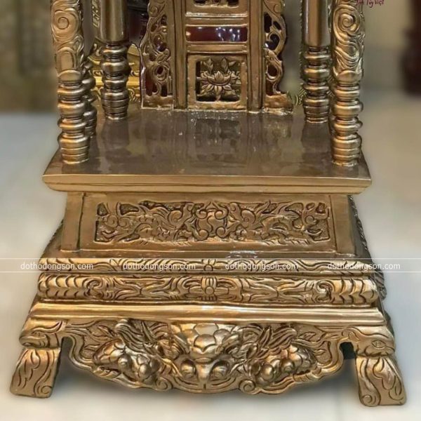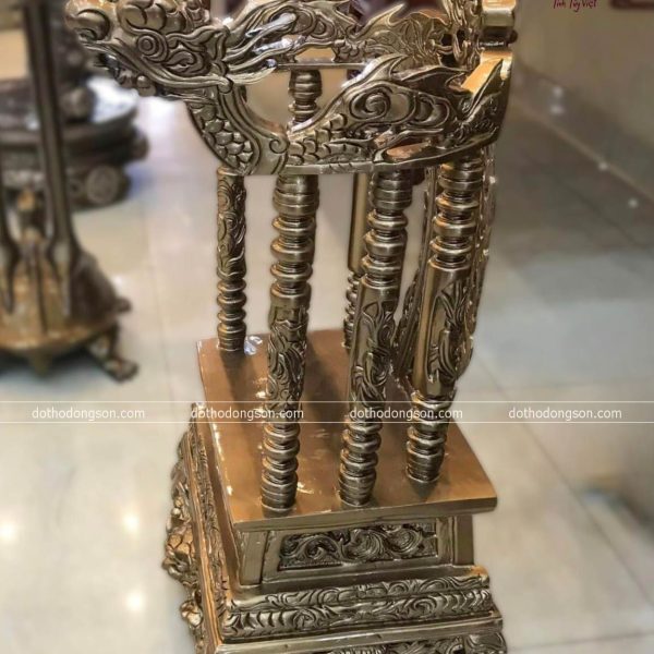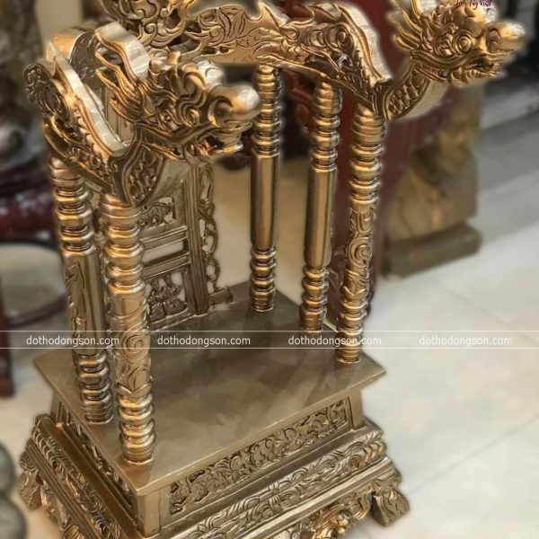 – Họa tiết tinh tế: Ngai Thờ bằng đồng được chạm khắc tinh xảo nhiều hình tượng may mắn như rồng, phương, mặt trời. Một số Ngai Thờ bằng đồng cao cấp còn được mạ vàng, khảm tam khí ngũ sắc để tăng sự sang trọng, quý phái nơi thờ tự.