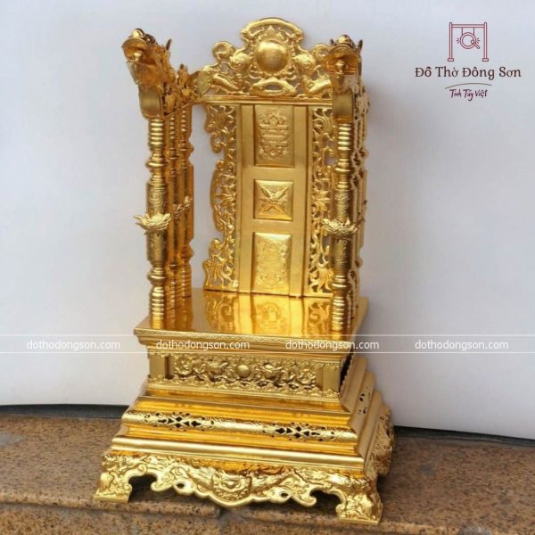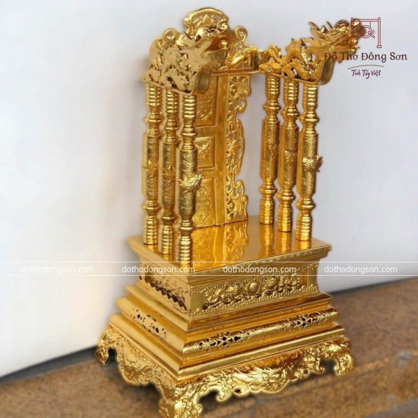 – Họa tiết tinh tế: Ngai Thờ bằng đồng được chạm khắc tinh xảo nhiều hình tượng may mắn như rồng, phương, mặt trời. Một số Ngai Thờ bằng đồng cao cấp còn được mạ vàng, khảm tam khí ngũ sắc để tăng sự sang trọng, quý phái nơi thờ tự.