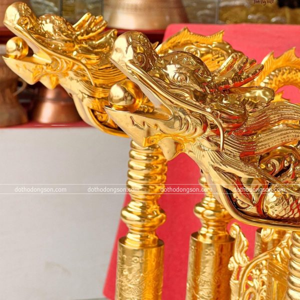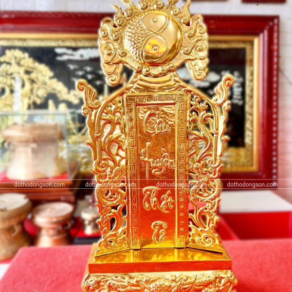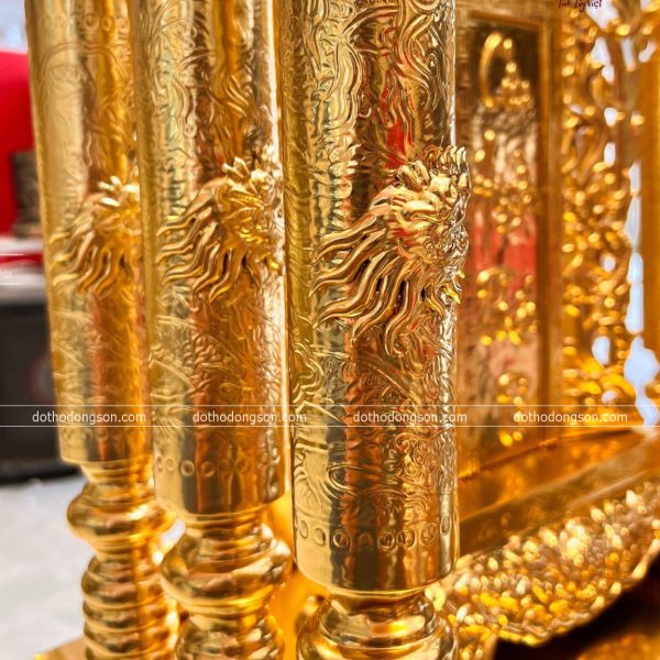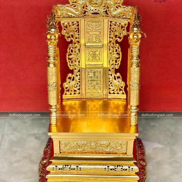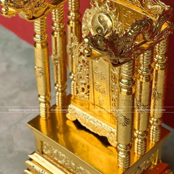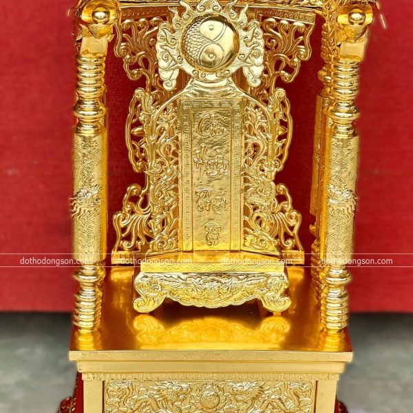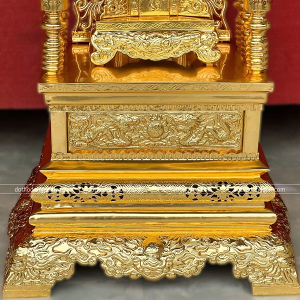 – Họa tiết tinh tế: Ngai Thờ bằng đồng được chạm khắc tinh xảo nhiều hình tượng may mắn như rồng, phương, mặt trời. Một số Ngai Thờ bằng đồng cao cấp còn được mạ vàng, khảm tam khí ngũ sắc để tăng sự sang trọng, quý phái nơi thờ tự.