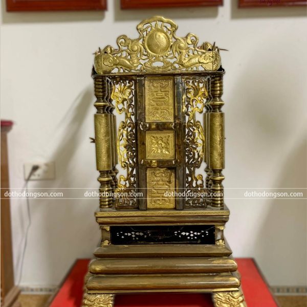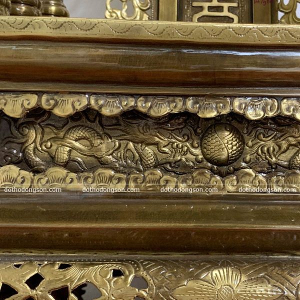 – Họa tiết tinh tế: Ngai Thờ bằng đồng được chạm khắc tinh xảo nhiều hình tượng may mắn như rồng, phương, mặt trời. Một số Ngai Thờ bằng đồng cao cấp còn được mạ vàng, khảm tam khí ngũ sắc để tăng sự sang trọng, quý phái nơi thờ tự.