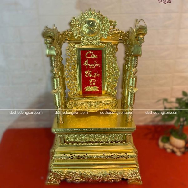 – Họa tiết tinh tế: Ngai Thờ bằng đồng được chạm khắc tinh xảo nhiều hình tượng may mắn như rồng, phương, mặt trời. Một số Ngai Thờ bằng đồng cao cấp còn được mạ vàng, khảm tam khí ngũ sắc để tăng sự sang trọng, quý phái nơi thờ tự.