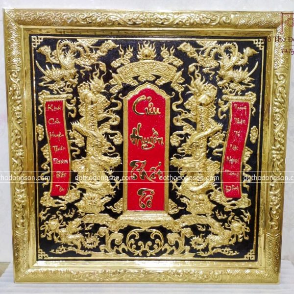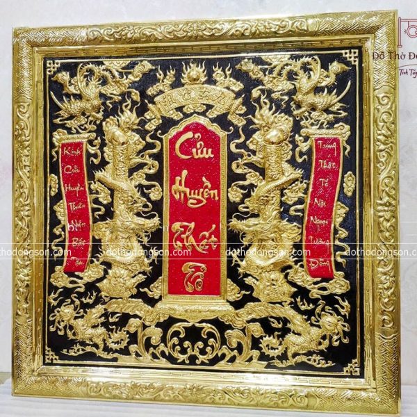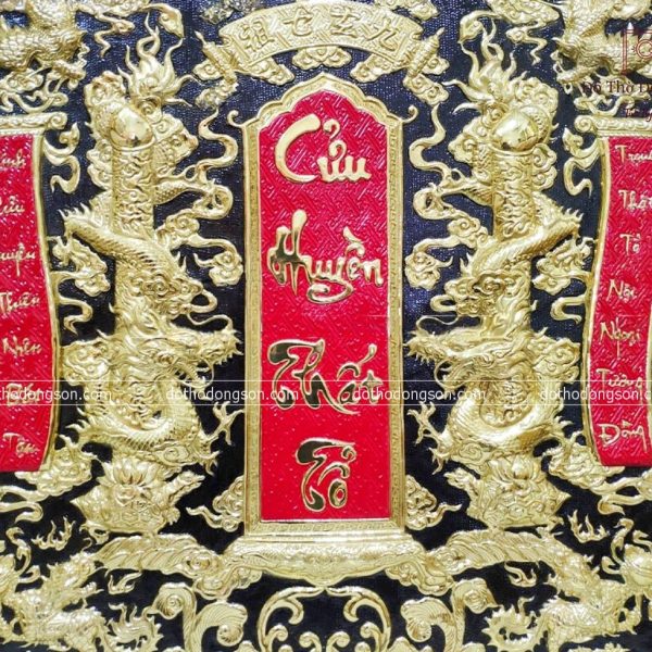 – Họa tiết tinh tế: Tranh Cửu Huyền Thất Tổ bằng đồng được trang trí nhiều họa tiết hoa văn mang ý nghĩa tốt lành như rồng, lân, rùa, phượng hoàng, hoa mẫu đơn, hoa mai, dơi. Một số tranh Cửu Huyền Thất Tổ cao cấp còn được dát vàng, dát tam khí ngũ sắc để tăng sự sang trọng, quý phái nơi thờ tự.