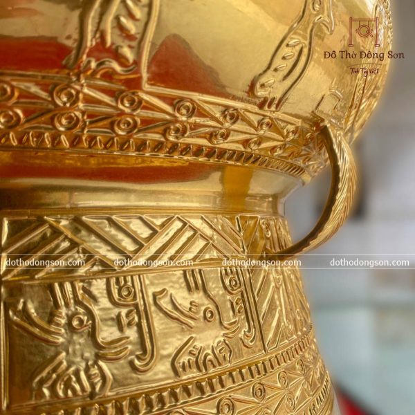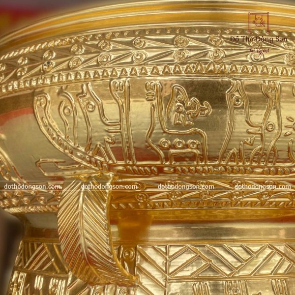 – Họa tiết tinh tế: Trống Đồng Đông Sơn bằng đồng được trang trí nhiều họa tiết hoa văn mang ý nghĩa tốt lành như mặt trời, chim hạc, hoạt động của con người… Một số Trống Đồng Đông Sơn cao cấp còn được dát vàng, khảm tam khí, ngũ sắc càng làm tăng thêm sự sang trọng, quý giá nơi thờ tự.
