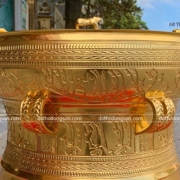 – Họa tiết tinh tế: Trống Đồng Đông Sơn bằng đồng được trang trí nhiều họa tiết hoa văn mang ý nghĩa tốt lành như mặt trời, chim hạc, hoạt động của con người… Một số Trống Đồng Đông Sơn cao cấp còn được dát vàng, khảm tam khí, ngũ sắc càng làm tăng thêm sự sang trọng, quý giá nơi thờ tự.