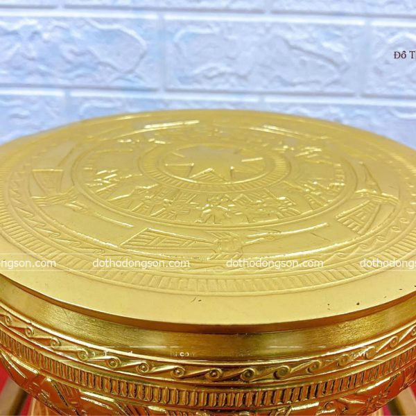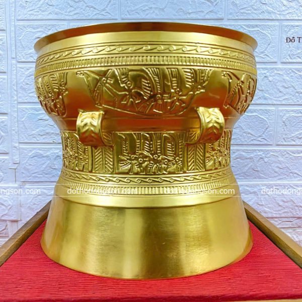 – Họa tiết tinh tế: Trống Đồng Đông Sơn bằng đồng được trang trí nhiều họa tiết hoa văn mang ý nghĩa tốt lành như mặt trời, chim hạc, hoạt động của con người… Một số Trống Đồng Đông Sơn cao cấp còn được dát vàng, khảm tam khí, ngũ sắc càng làm tăng thêm sự sang trọng, quý giá nơi thờ tự.