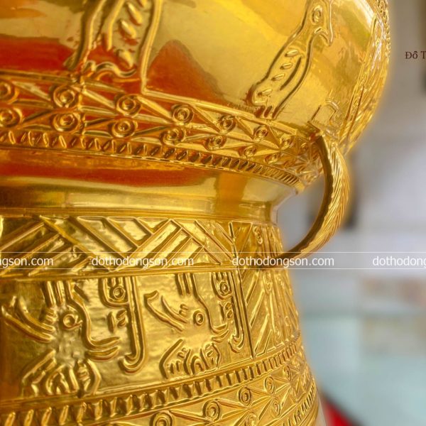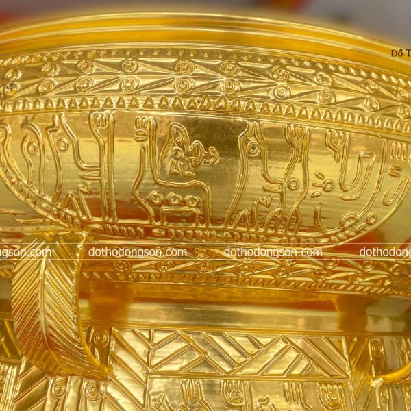 – Họa tiết tinh tế: Trống Đồng Đông Sơn bằng đồng được trang trí nhiều họa tiết hoa văn mang ý nghĩa tốt lành như mặt trời, chim hạc, hoạt động của con người… Một số Trống Đồng Đông Sơn cao cấp còn được dát vàng, khảm tam khí, ngũ sắc càng làm tăng thêm sự sang trọng, quý giá nơi thờ tự.