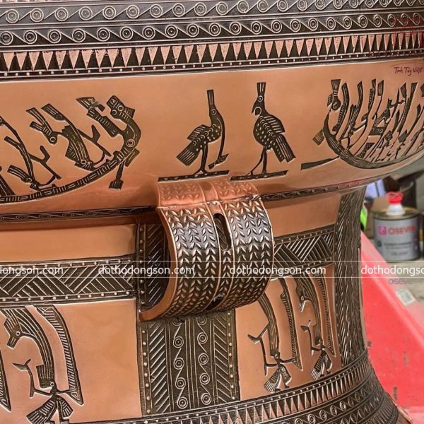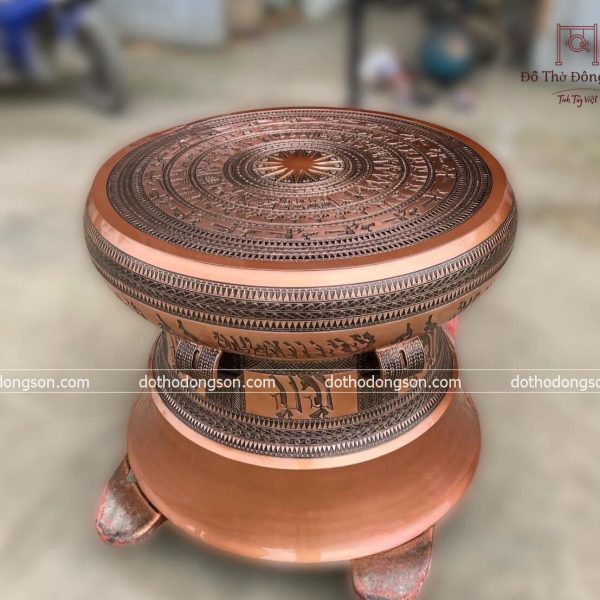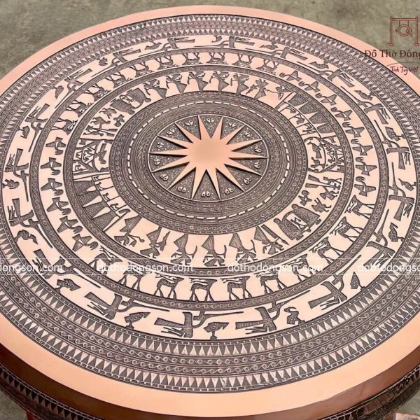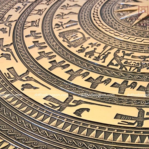 – Họa tiết tinh tế: Trống Đồng Đông Sơn bằng đồng được trang trí nhiều họa tiết hoa văn mang ý nghĩa tốt lành như mặt trời, chim hạc, hoạt động của con người… Một số Trống Đồng Đông Sơn cao cấp còn được dát vàng, khảm tam khí, ngũ sắc càng làm tăng thêm sự sang trọng, quý giá nơi thờ tự.