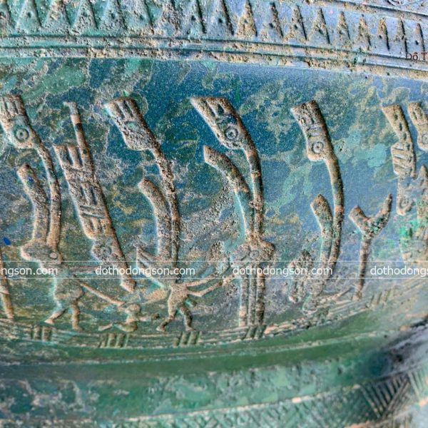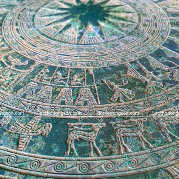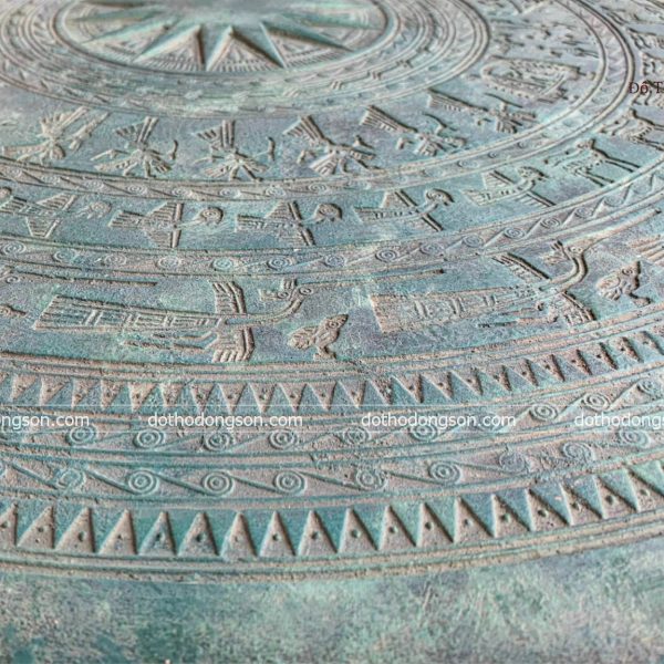 – Họa tiết tinh tế: Trống Đồng Đông Sơn bằng đồng được trang trí nhiều họa tiết hoa văn mang ý nghĩa tốt lành như mặt trời, chim hạc, hoạt động của con người… Một số Trống Đồng Đông Sơn cao cấp còn được dát vàng, khảm tam khí, ngũ sắc càng làm tăng thêm sự sang trọng, quý giá nơi thờ tự.