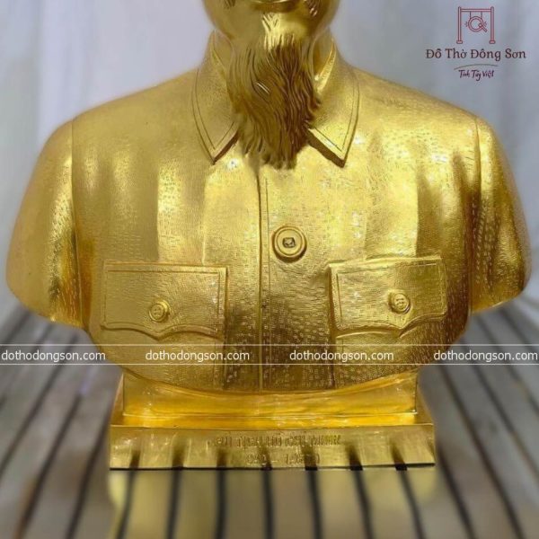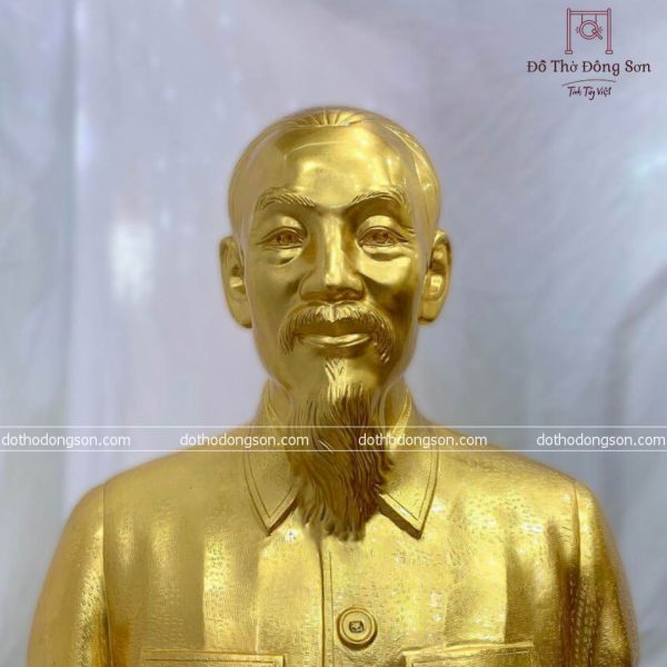 Tượng Bán thân Chủ tịch Hồ Chí Minh bằng đồng đỏ dát vàng 24K cao 50cm