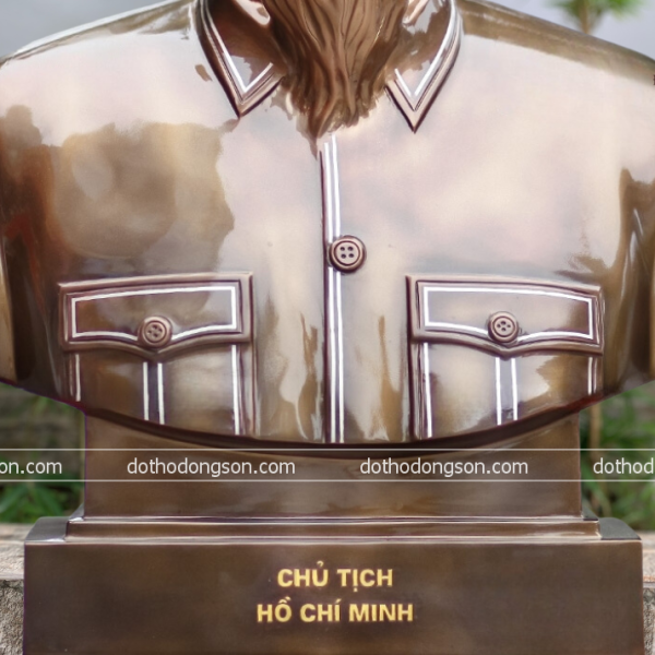 – Họa tiết tinh tế: Tượng Chủ tịch Hồ Chí Minh bằng đồng được tạo hình bằng khuôn đất, sau đó chỉnh sửa chi tiết thủ công tỉ mỉ bằng tay nên mỗi bức tượng sẽ sở hữu thần thái có nét riêng biệt, thể hiện đầy đủ phong thái và khí chất của Người. Một số bức tượng bằng đồng cao cấp còn được mạ vàng, khảm tam khí ngũ sắc để tăng sự sang trọng, quý phái nơi thờ tự.
