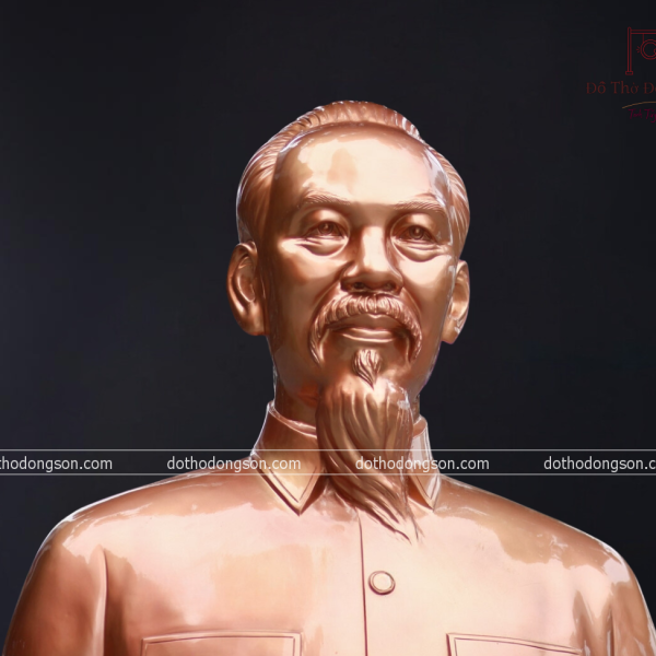 – Họa tiết tinh tế: Tượng Chủ tịch Hồ Chí Minh bằng đồng được tạo hình bằng khuôn đất, sau đó chỉnh sửa chi tiết thủ công tỉ mỉ bằng tay nên mỗi bức tượng sẽ sở hữu thần thái có nét riêng biệt, thể hiện đầy đủ phong thái và khí chất của Người. Một số bức tượng bằng đồng cao cấp còn được mạ vàng, khảm tam khí ngũ sắc để tăng sự sang trọng, quý phái nơi thờ tự.