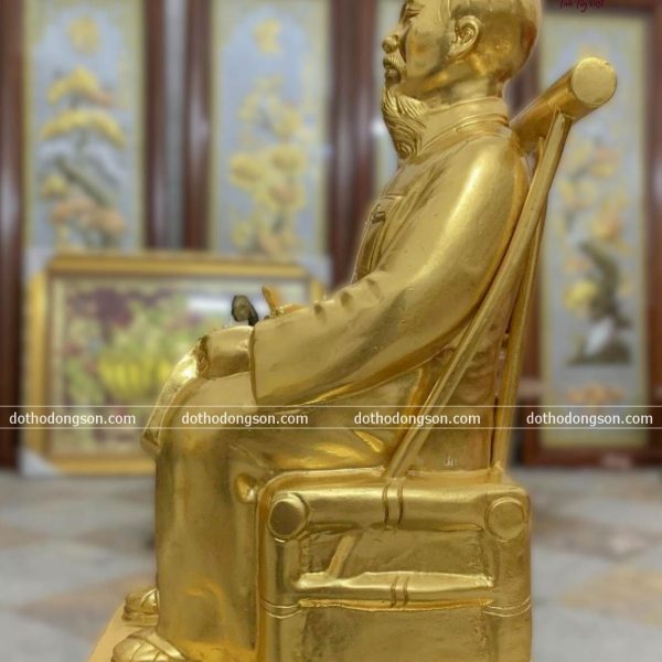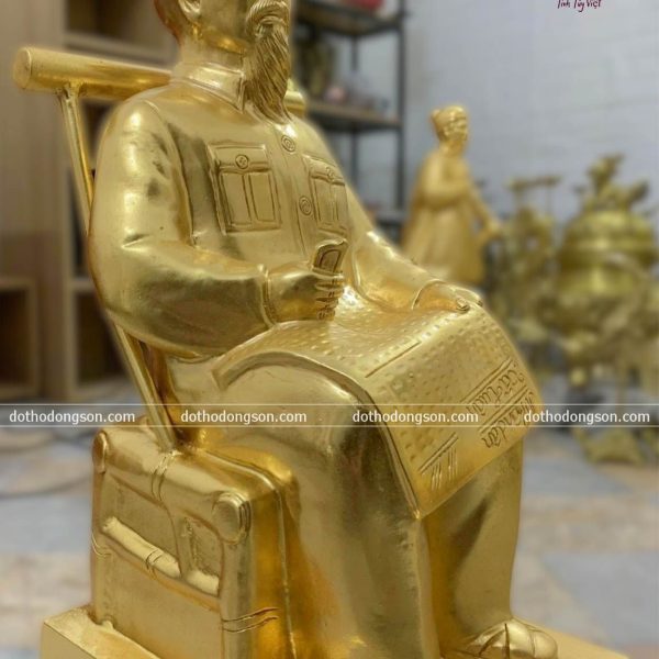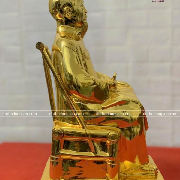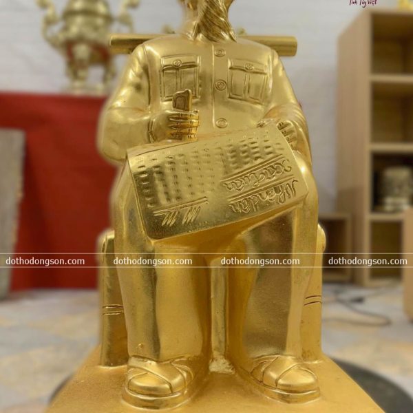 Tượng Chủ tịch Hồ Chí Minh ngồi ghế đọc báo đồng đỏ dát vàng 24K cao 42cm