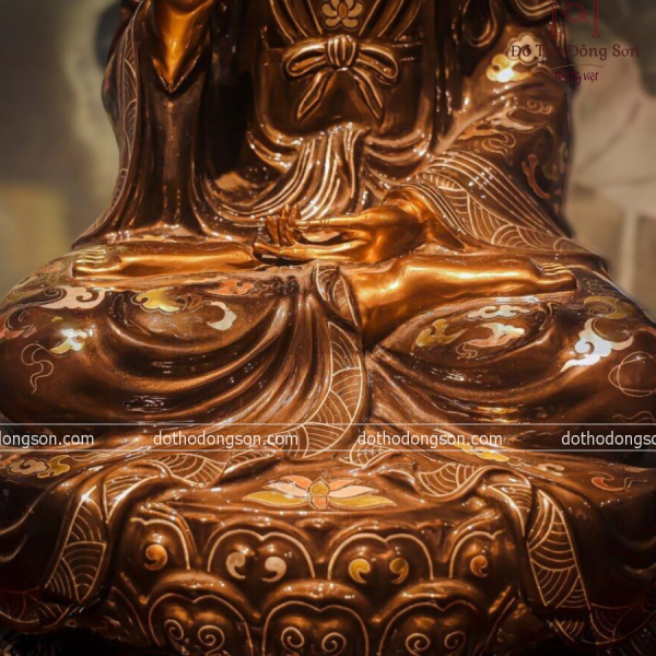 – Họa tiết tinh tế: Tượng Quan Âm Bồ Tát bằng đồng được tạo hình bằng khuôn đất, sau đó chỉnh sửa chi tiết thủ công tỉ mỉ bằng tay nên mỗi bức tượng sẽ sở hữu sắc diện một cách thần thái của Ngài. Một số bức tượng bằng đồng cao cấp còn được mạ vàng, khảm tam khí ngũ sắc để tăng sự sang trọng, quý phái nơi thờ tự.
