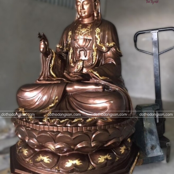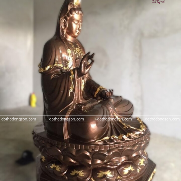 – Họa tiết tinh tế: Tượng Quan Âm Bồ Tát bằng đồng được tạo hình bằng khuôn đất, sau đó chỉnh sửa chi tiết thủ công tỉ mỉ bằng tay nên mỗi bức tượng sẽ sở hữu sắc diện một cách thần thái của Ngài. Một số bức tượng bằng đồng cao cấp còn được mạ vàng, khảm tam khí ngũ sắc để tăng sự sang trọng, quý phái nơi thờ tự.