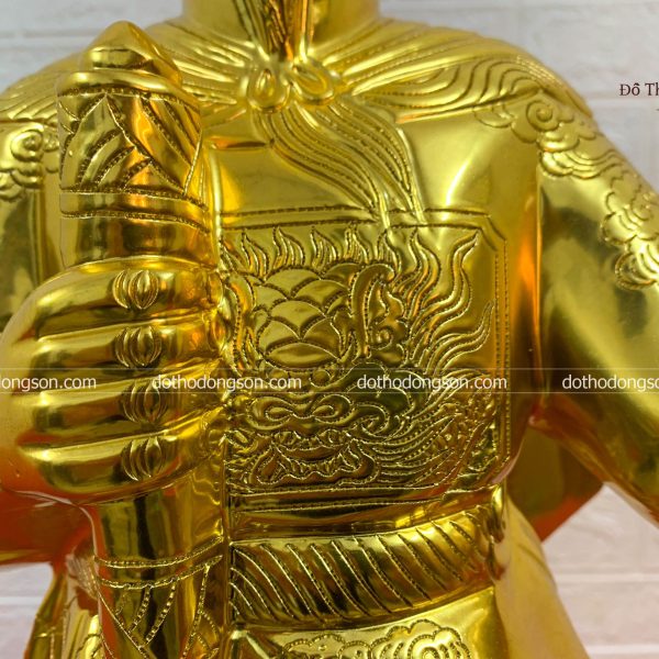 – Họa tiết tinh tế: Tượng Trần Quốc Tuấn bằng đồng được tạo hình bằng khuôn đất, sau đó chỉnh sửa chi tiết thủ công tỉ mỉ bằng tay nên mỗi bức tượng sẽ sở hữu thần thái có nét riêng biệt, thể hiện đầy đủ phong thái và khí chất của Người. Một số bức tượng bằng đồng cao cấp còn được mạ vàng, khảm tam khí ngũ sắc để tăng sự sang trọng, quý phái nơi thờ tự.