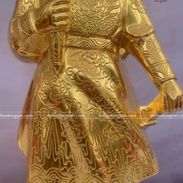 – Họa tiết tinh tế: Tượng Trần Quốc Tuấn bằng đồng được tạo hình bằng khuôn đất, sau đó chỉnh sửa chi tiết thủ công tỉ mỉ bằng tay nên mỗi bức tượng sẽ sở hữu thần thái có nét riêng biệt, thể hiện đầy đủ phong thái và khí chất của Người. Một số bức tượng bằng đồng cao cấp còn được mạ vàng, khảm tam khí ngũ sắc để tăng sự sang trọng, quý phái nơi thờ tự.